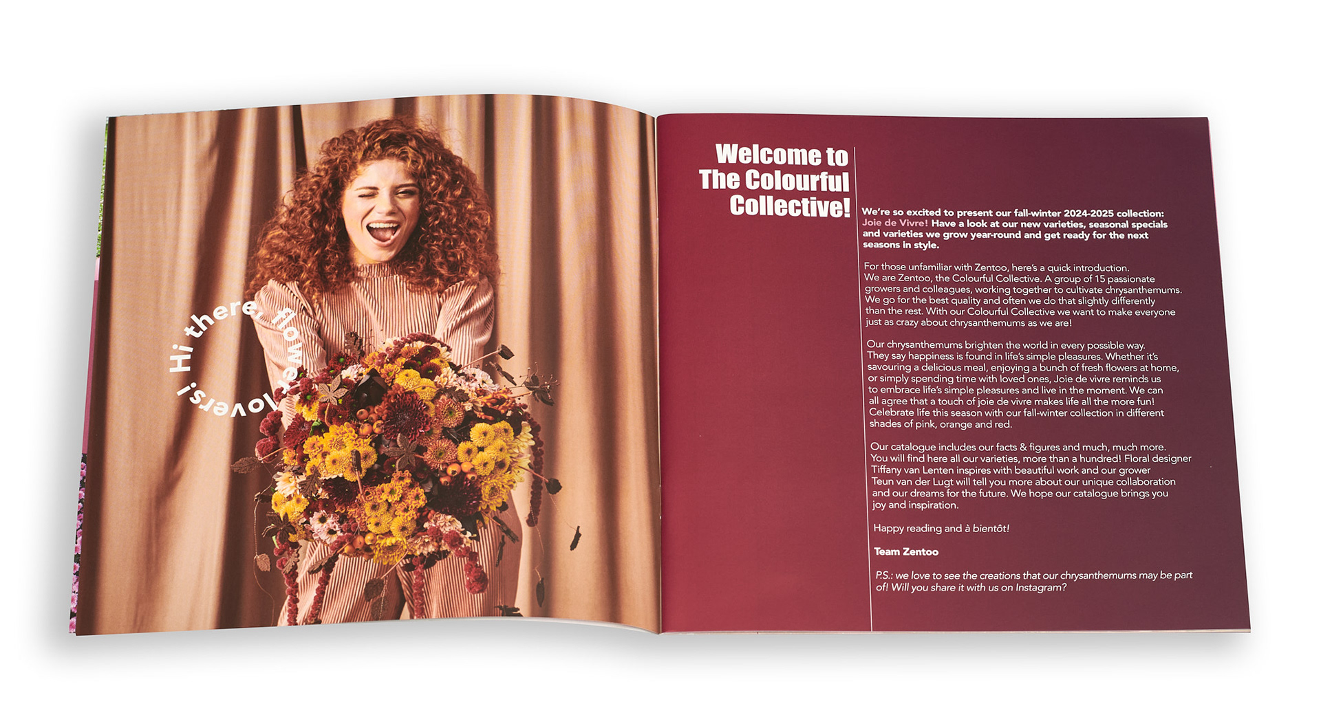 In opdracht van Zentoo mocht Studio op Smaak dit keer ook de najaarsbrochure van 2024 vormgeven. Van concept naar, campagnefotografie, naar ontwerp. Samen met een sterk team hebben we een prachtige productie neergezet en uitgerold. Zentoo, opgericht in 2007, is een collectief van vijftien toegewijde kwekers, met als doel hun liefde voor chrysanten onder één merk te delen. Hun missie is om als het belangrijkste Europese merk de kwaliteit en verscheidenheid van hun bloemen onder de aandacht te brengen. Met deze samenwerking was het mijn taak om de uitingen van Zentoo naar een hoger niveau te tillen en het hele team samen te brengen. De uitingen zijn zowel gedrukte als digitale media.